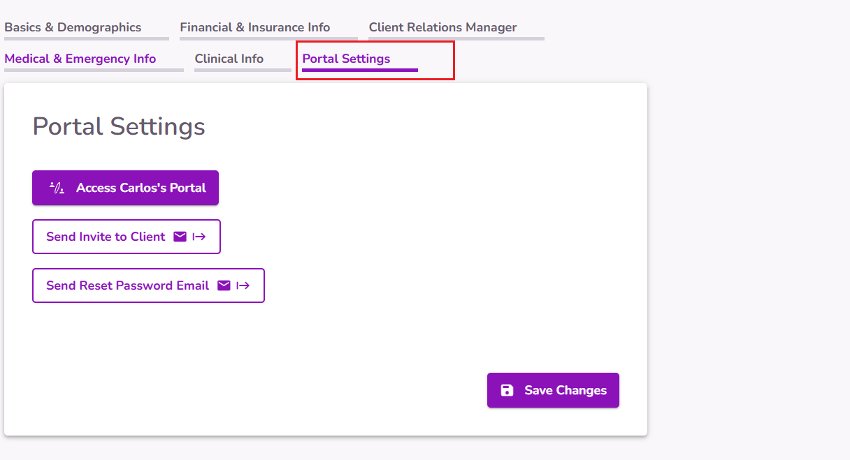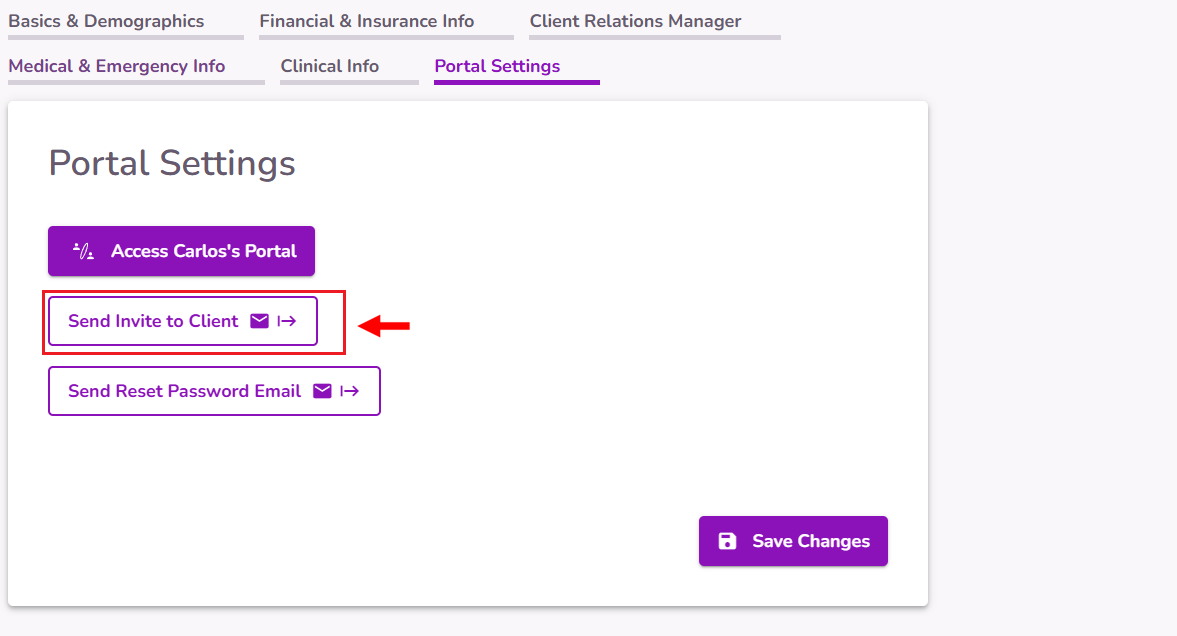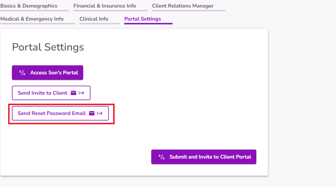 IMPORTANT: The portal invitation can only be sent once. If a client misses the invitation email or if the link expires (7 days after sending it), it is best to send a Reset Password Email