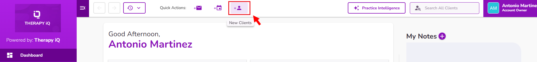 NOTE: You could also use the New Clients icon from the Quick Actions buttons