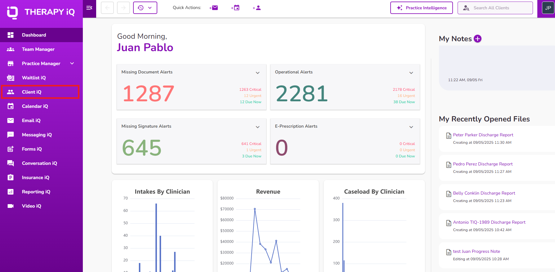 From the Navigation Bar, select Client iQ.