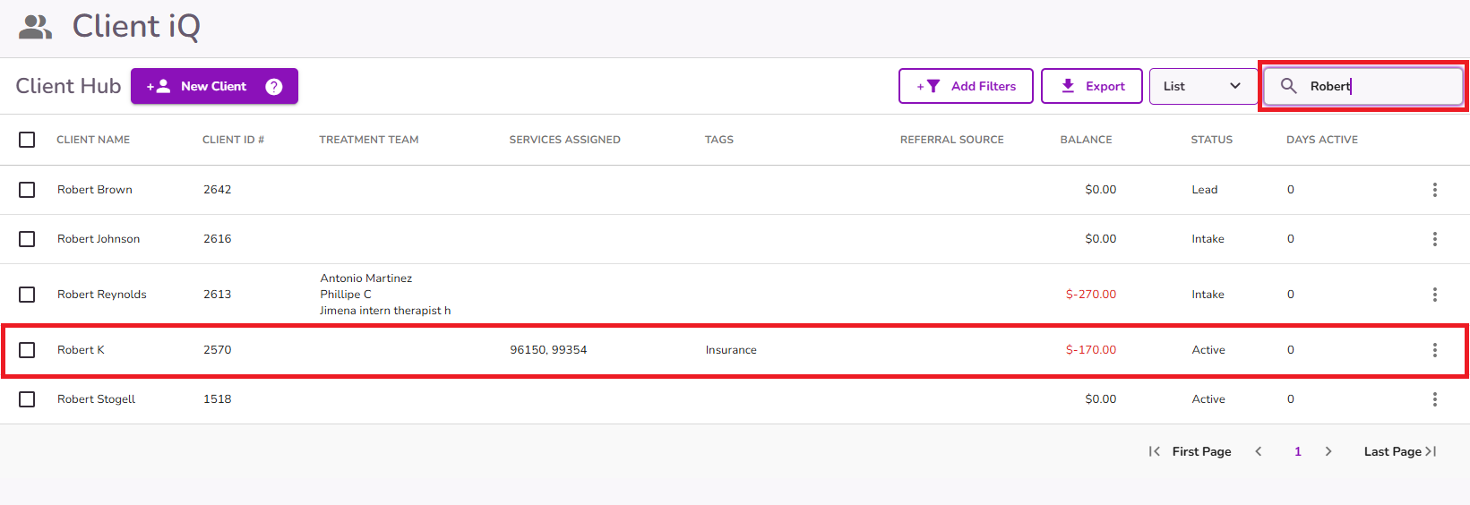 Search for or select your client from the Client iQ list.
