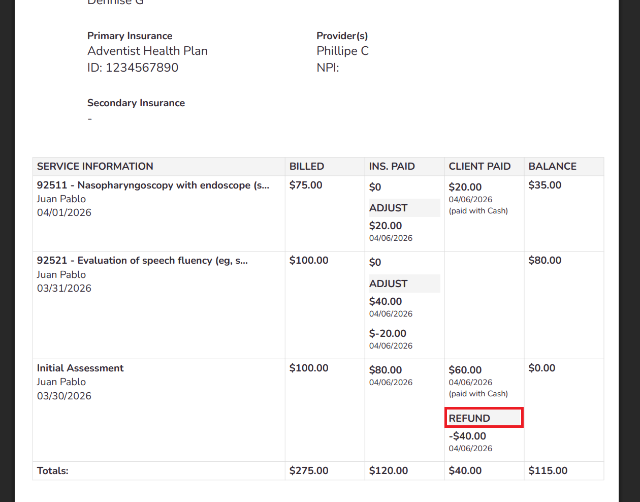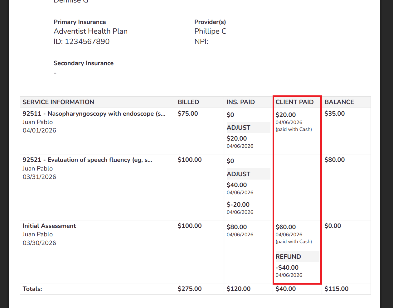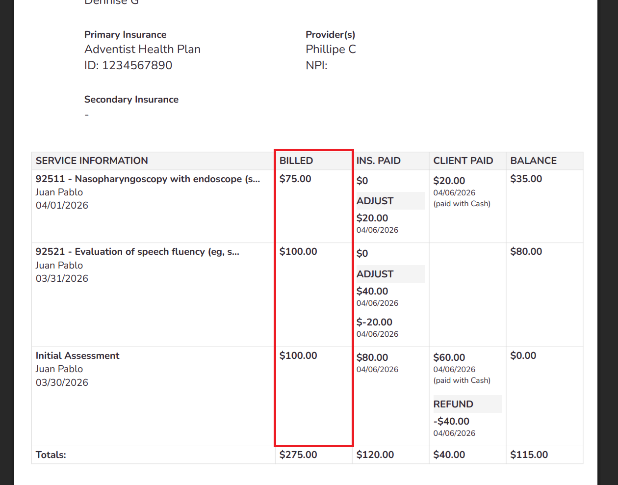 IMPORTANT: If you'd like to send this document to the client immediately, be sure to check the Email Billing Statement to Client box.