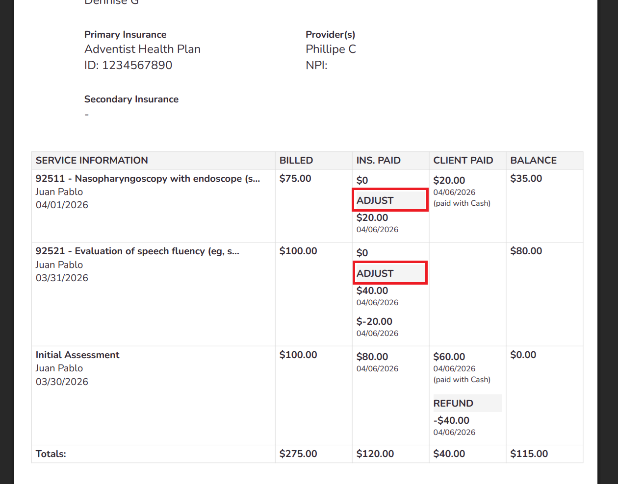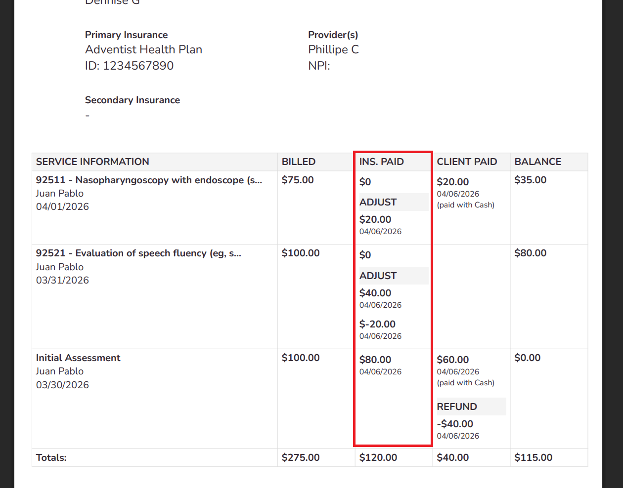 Any adjustments made to the invoice and their dates will also appear in this column.