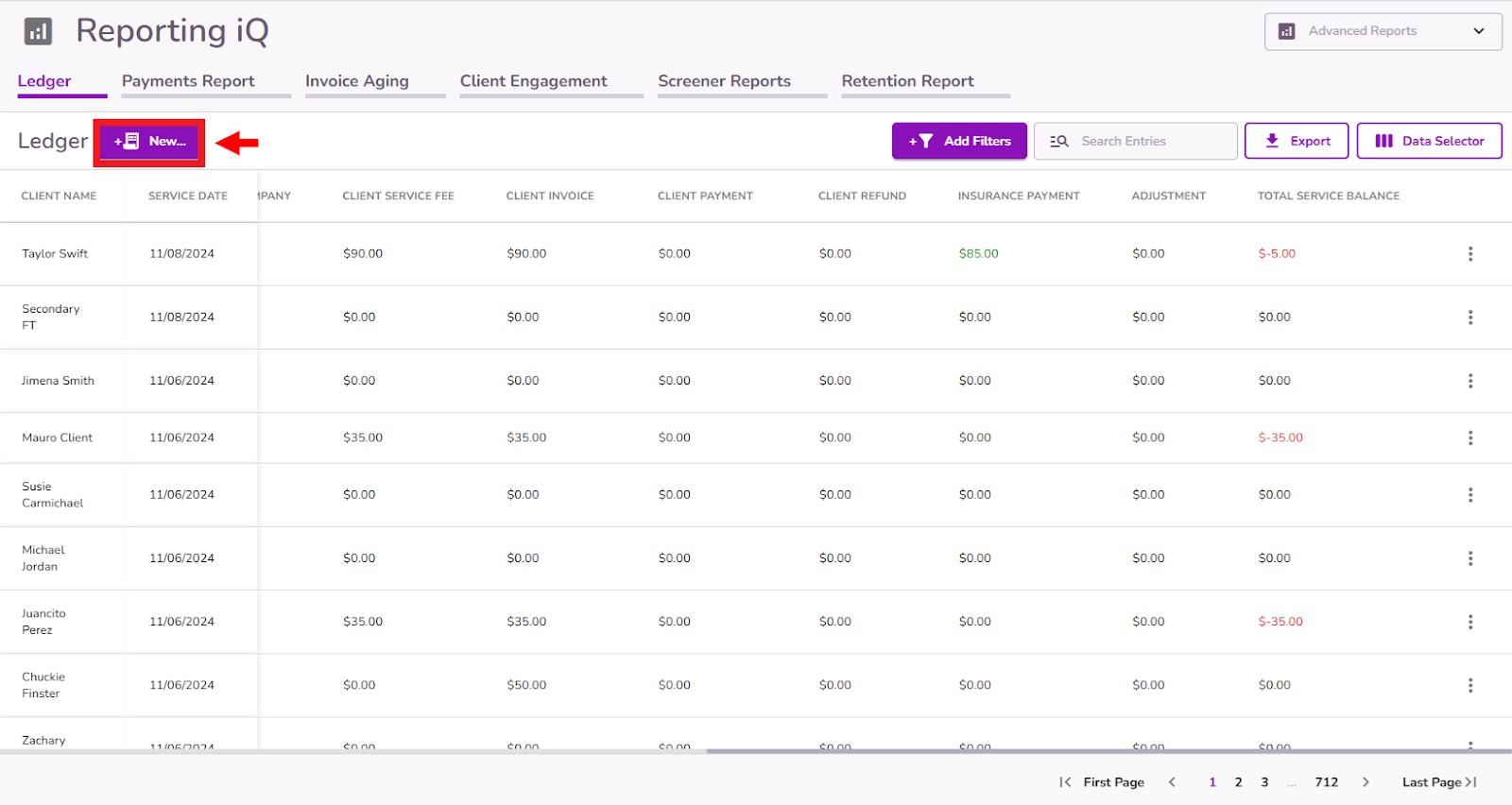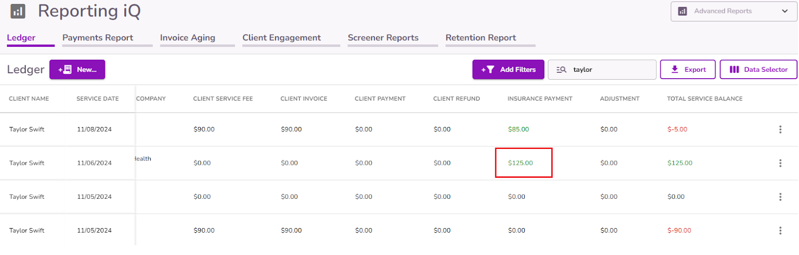 After submitting the payment, you will be brought back to the Ledger page and all associated line items touched will be updated.