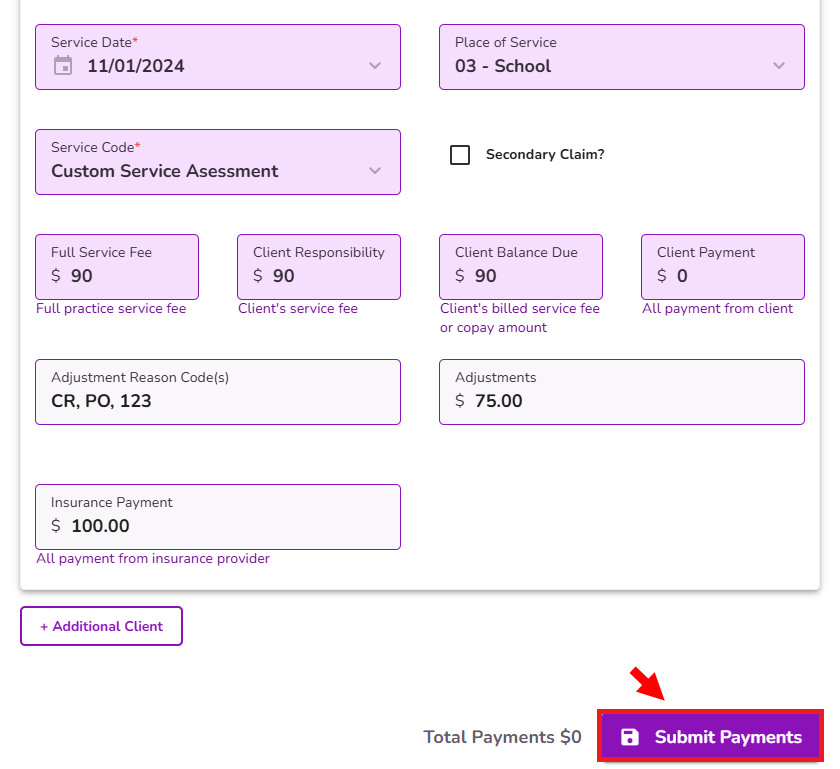 If the Secondary Claim? the checkbox is selected, that payment will show on the subline of the Ledger. Click here to learn how secondary claims are reflected on the ledger.