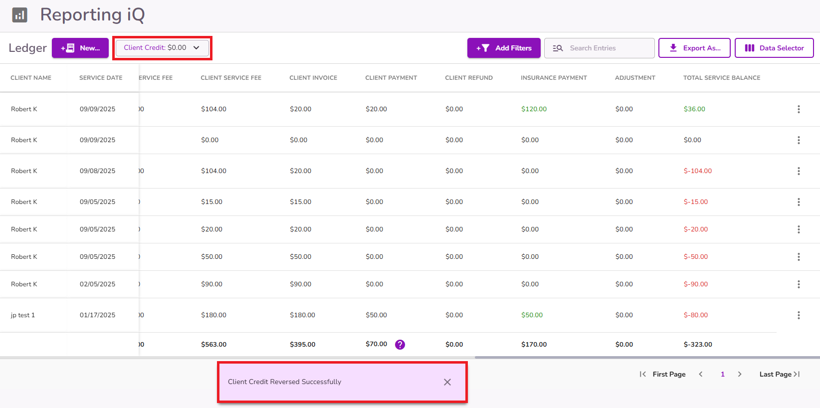 A notification will confirm the reversal, and the client credit balance will be reduced accordingly.