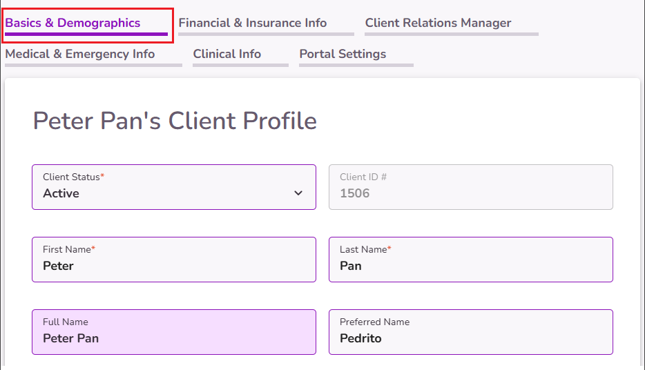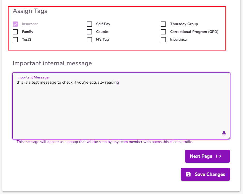 IMPORTANT: The “Insurance” tag is preset by default and will be automatically assigned to any client once insurance information is added to their profile.