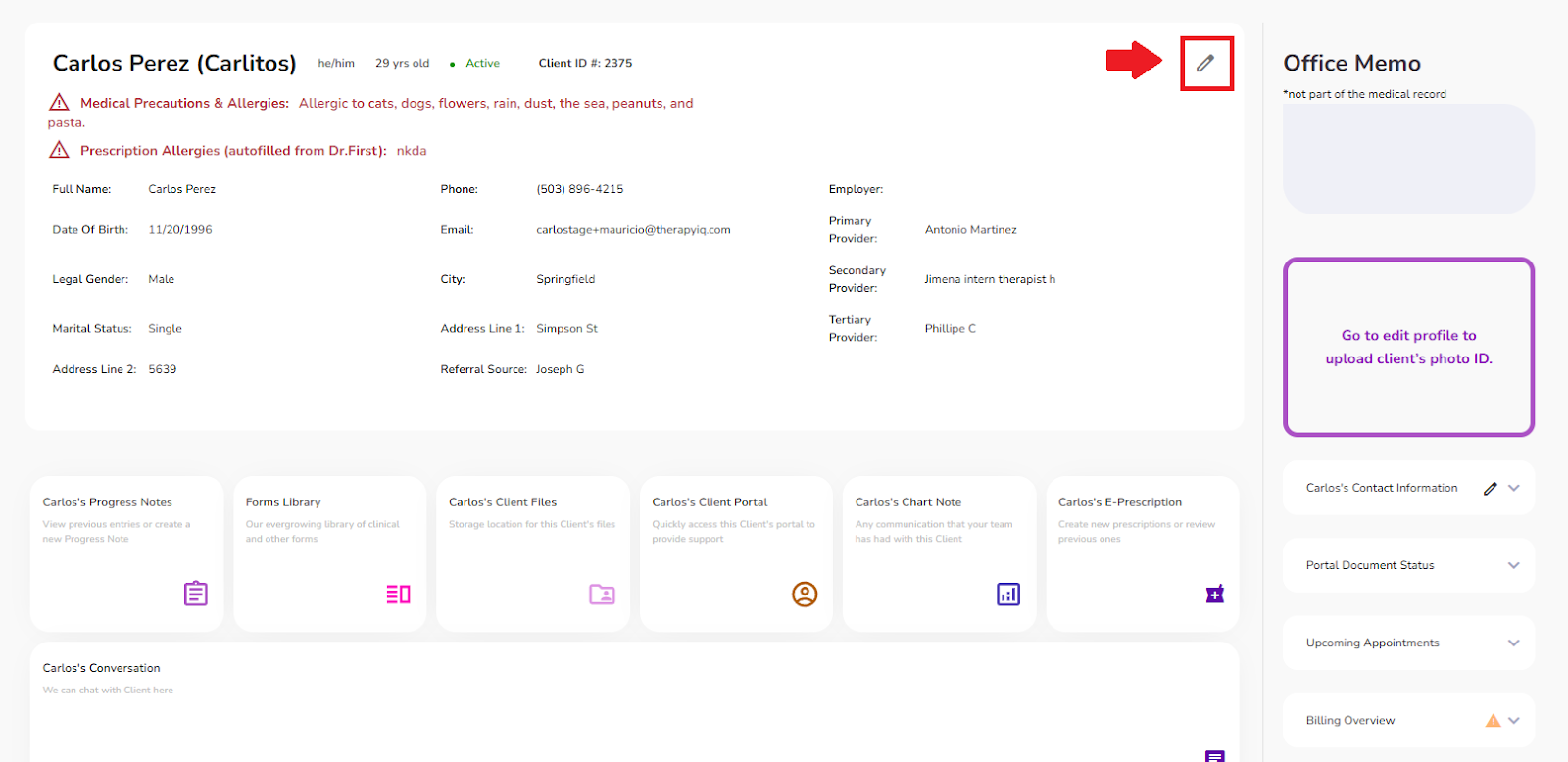From the Client Profile, select the Edit icon