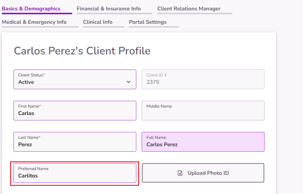 Preferred names will appear across various features and workflows in TiQ, helping users easily identify clients by the name they prefer.