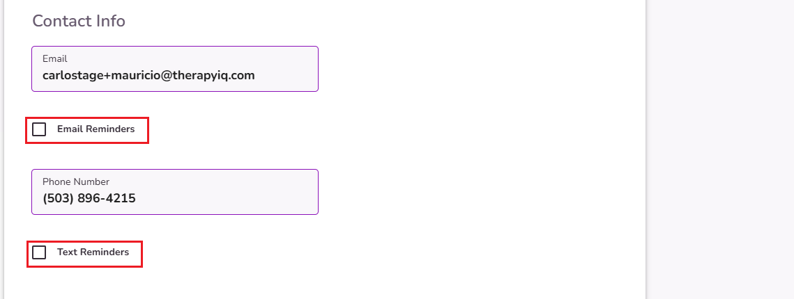 You can select the checkboxes to send Email or Text Reminders.