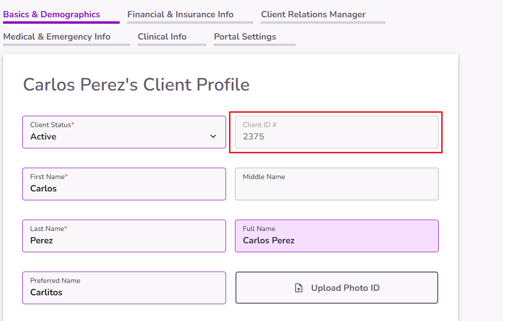 NOTE: The Client ID # is given by default and can’t be edited.