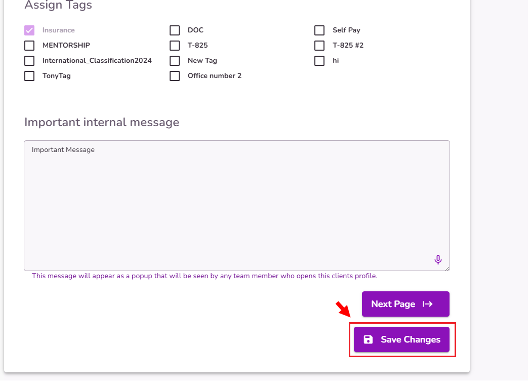 Tags are used to segment clients based on certain criteria and will aid you in searching for clients in the future.
