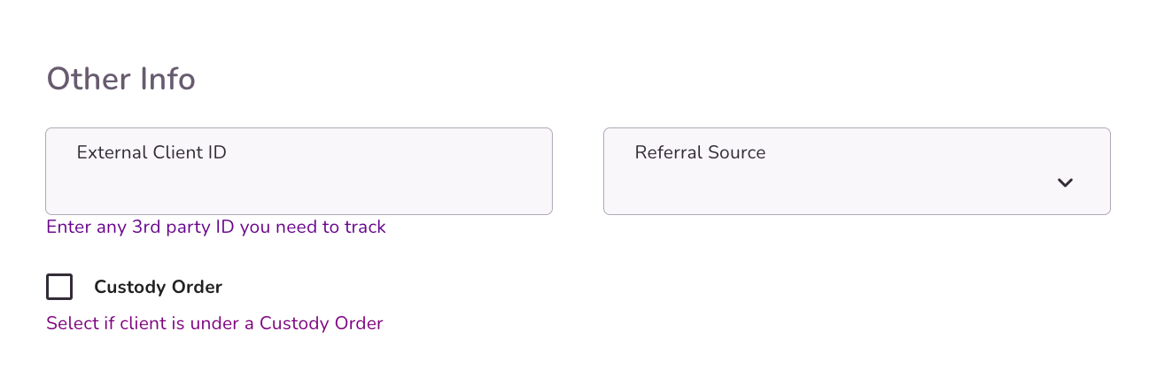Such as External Client ID and a Referral Source