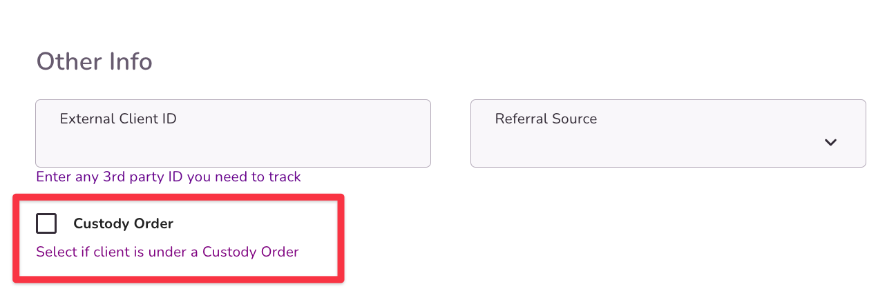 Select the Custody Order box if your client has a custody order