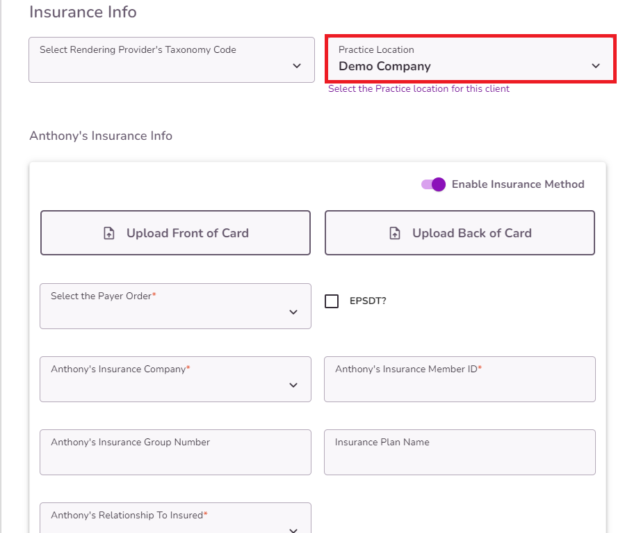 Click here to learn more about adding insurance info for your client.