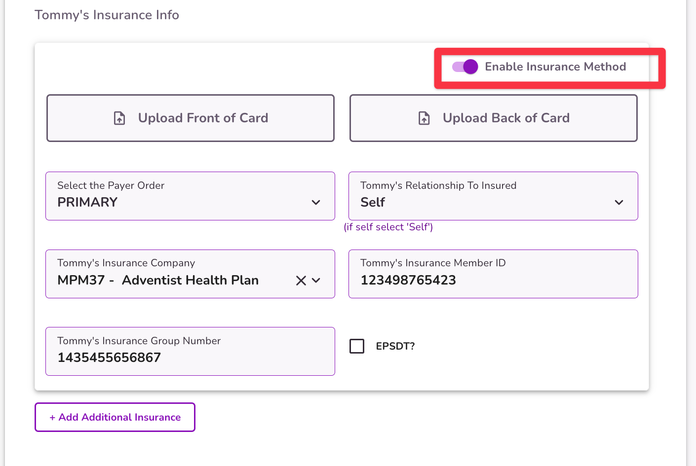If you need to add another Insurance select the + Add Additional Insurance button