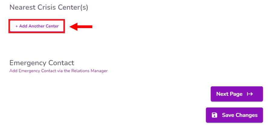 To add a Nearest Crisis Center, select the +Add Another Center button