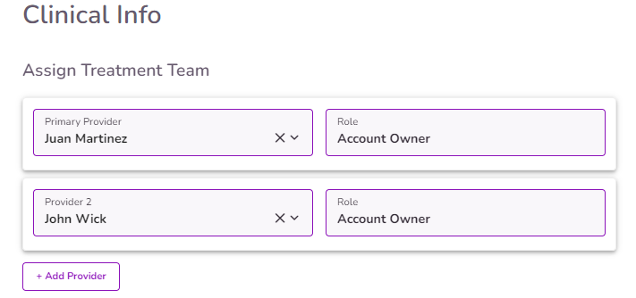 IMPORTANT: If the Primary Provider has a supervisor(s) assigned, the supervisor(s) will also be added as part of the client’s treatment team automatically.