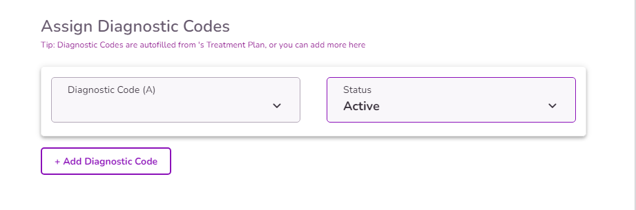 Diagnostic Codes are autofilled from the Client’s Treatment Plan. You can also add more manually.