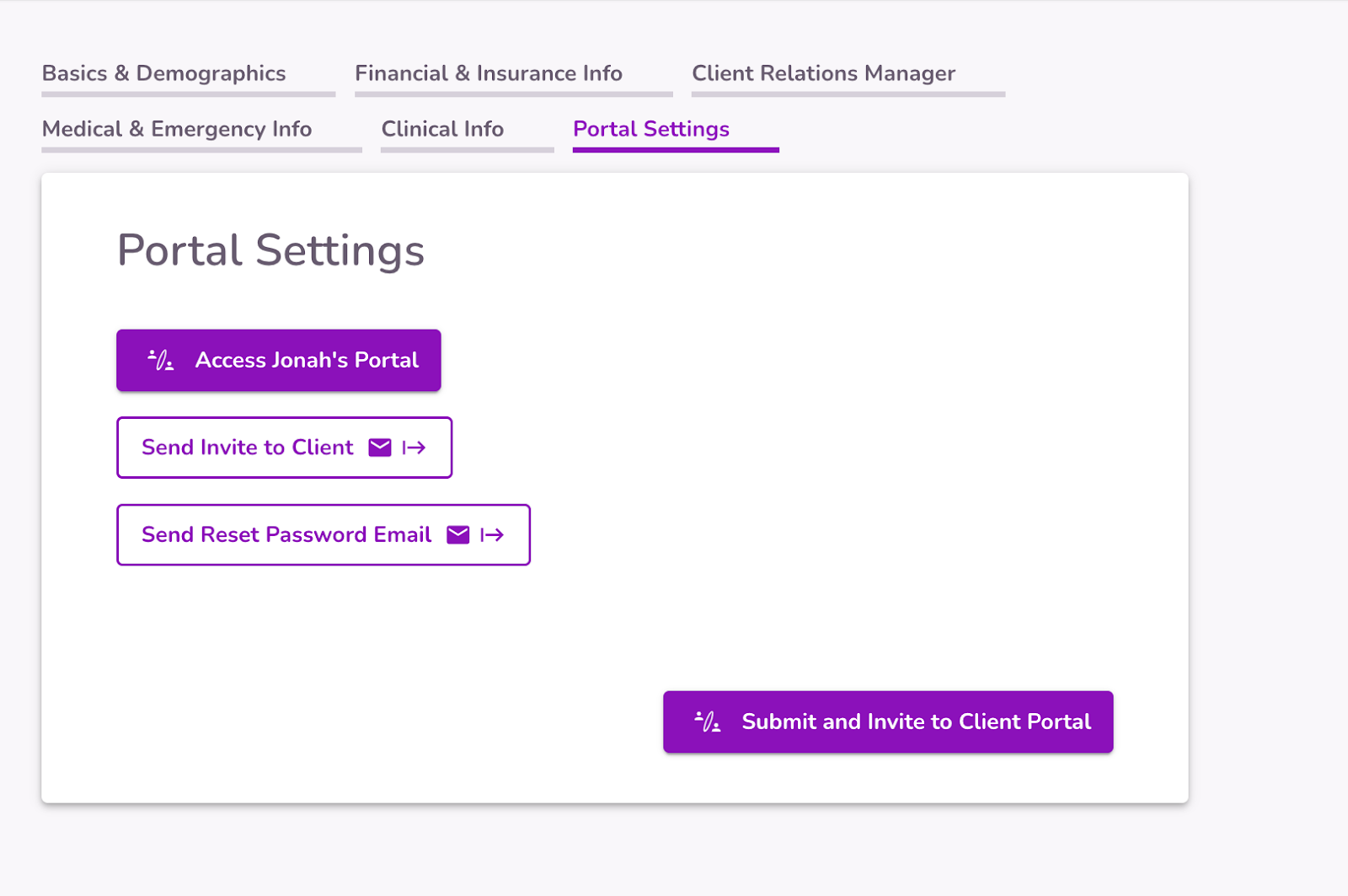 Submit and Invite to Client Portal: This button will Submit the Client Profile and Invite the Client to the Client Portal.