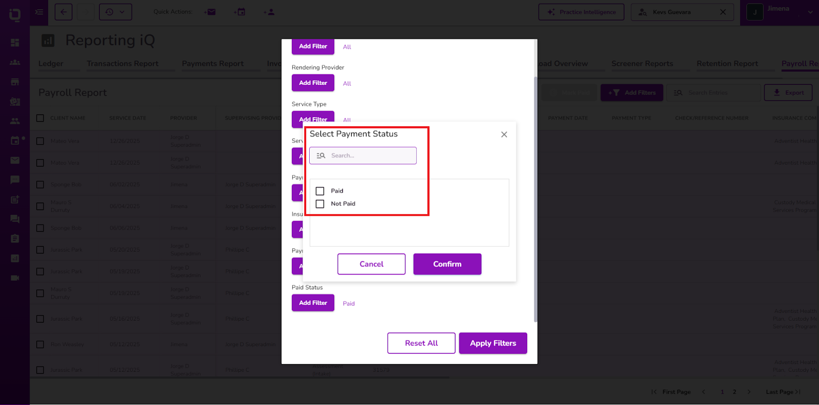 You can now filter payroll data based on whether services are paid or unpaid.